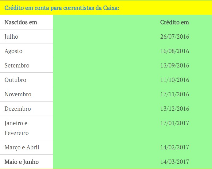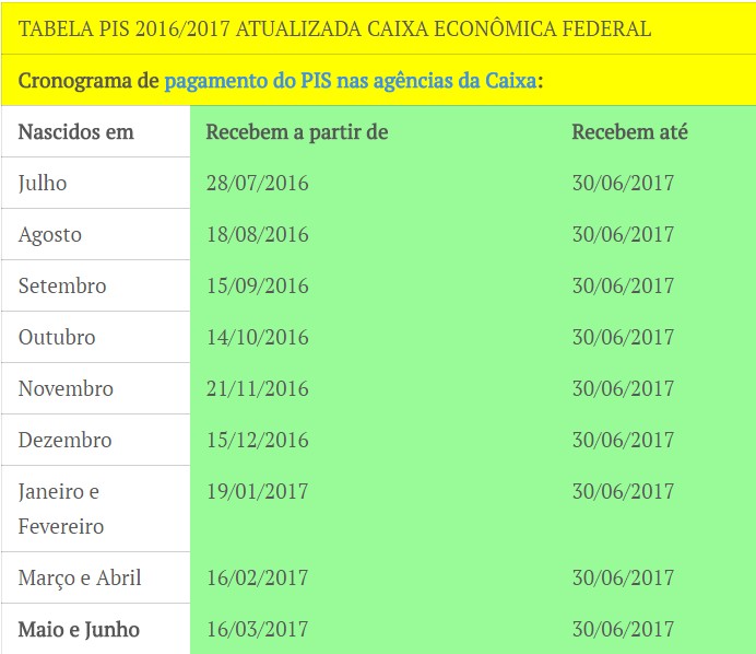 TABELA PIS 2016/2017 – CALENDÁRIO DO PIS 2016 CAIXA